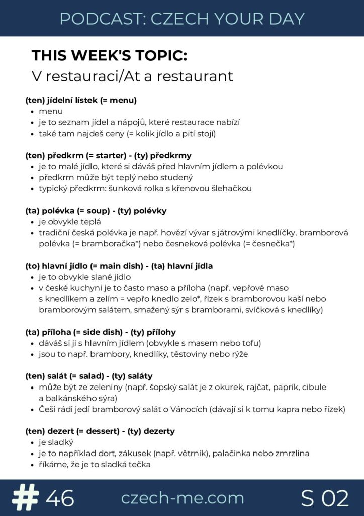 This week is all about restaurants so that you can feel confident when ordering, paying etc.