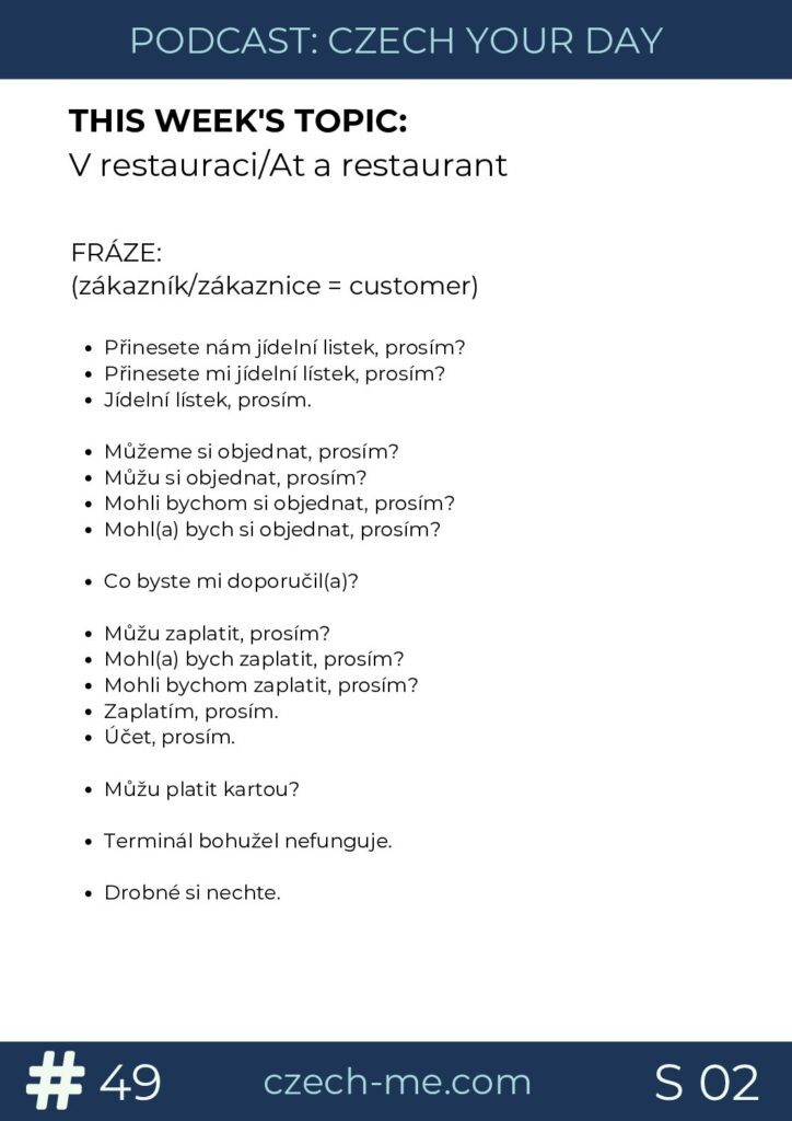 Přinesete nám jídelní lístek, prosím? (Could you bring us the menu, please?)