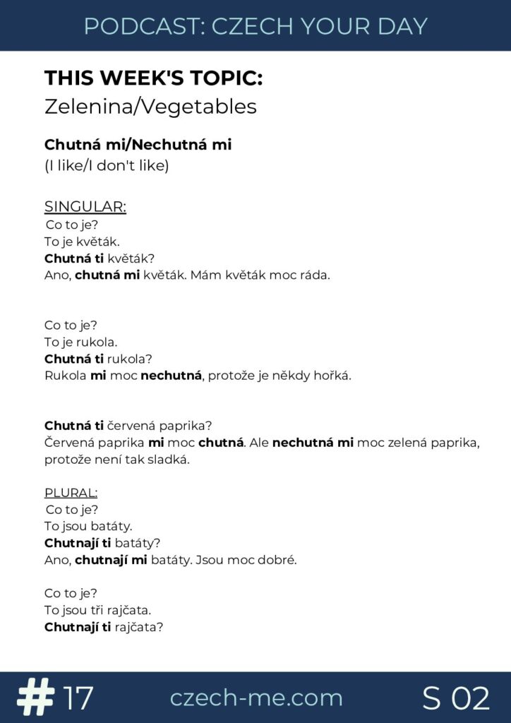Chutnají ti rajčata? (Do you like tomatoes?)